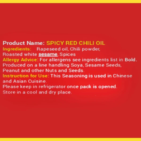 Ingredients: Refined vegetable oil, Chili peppers, Garlic, Spices, Salt